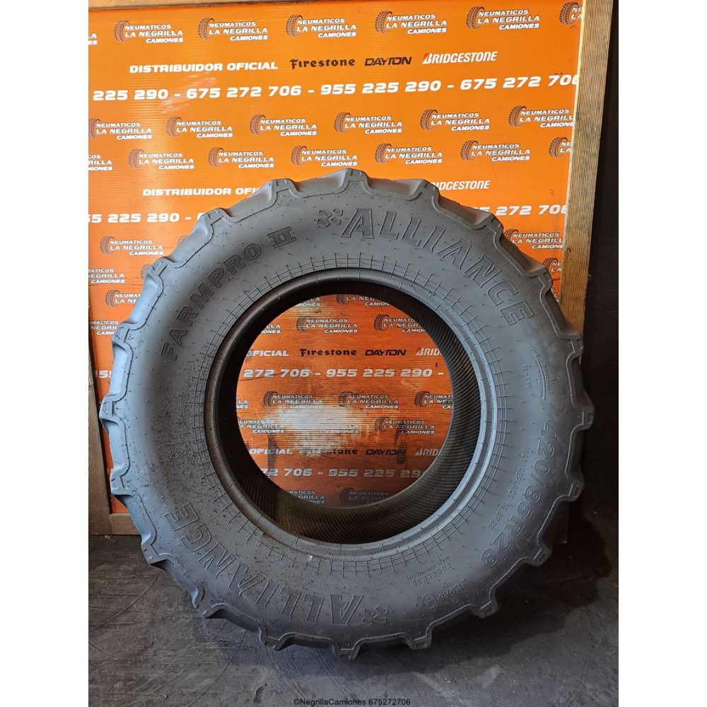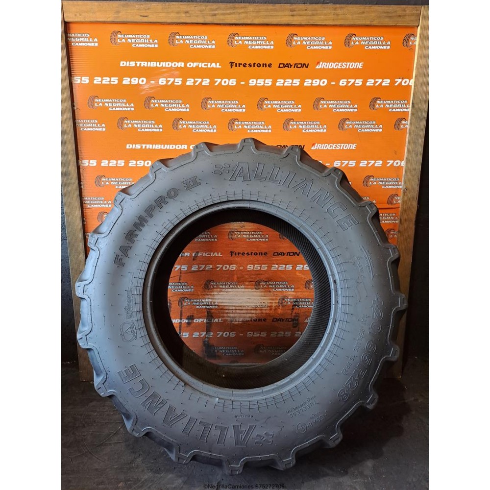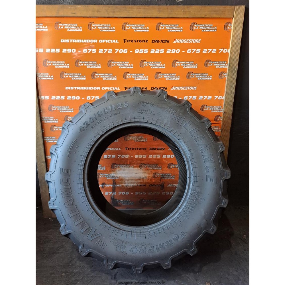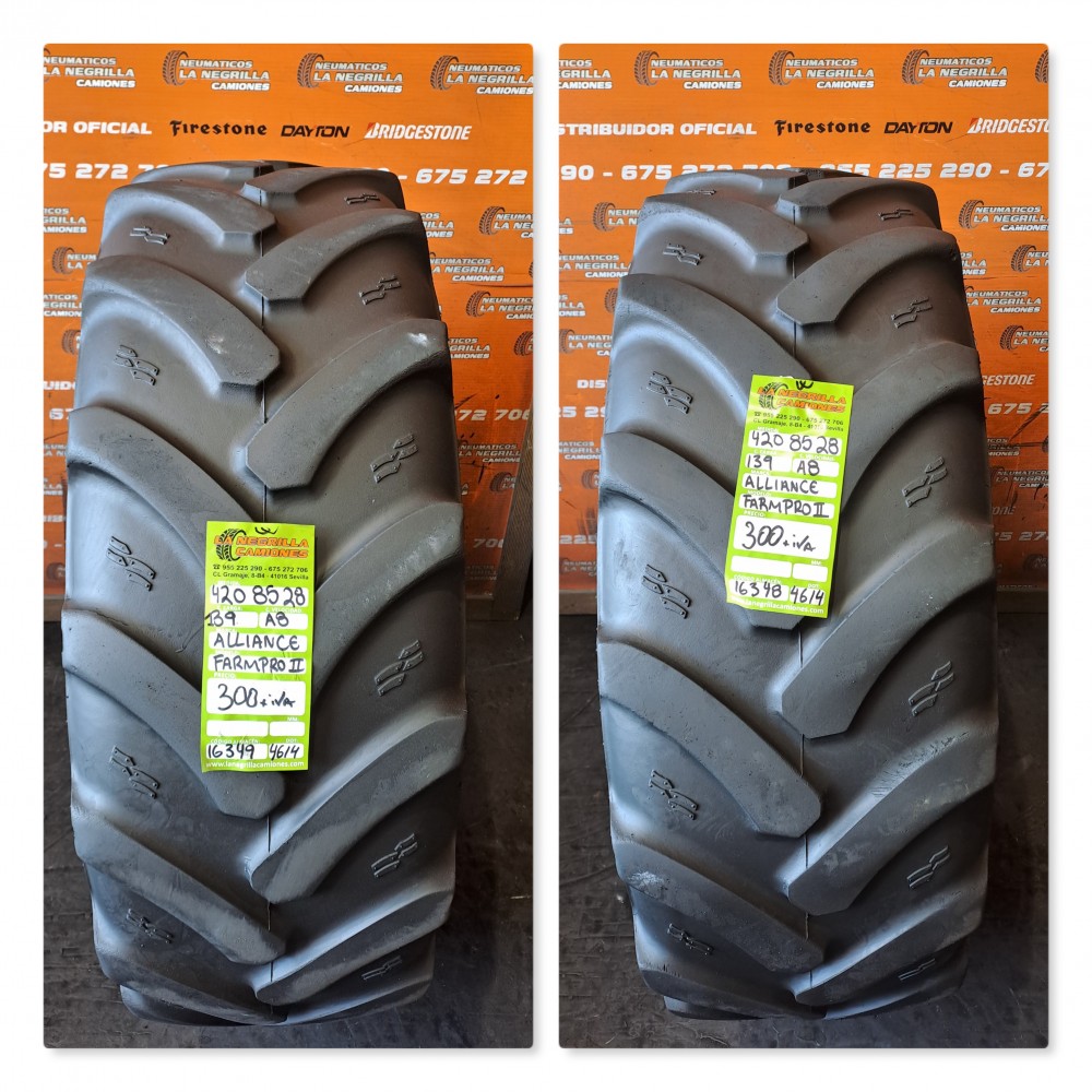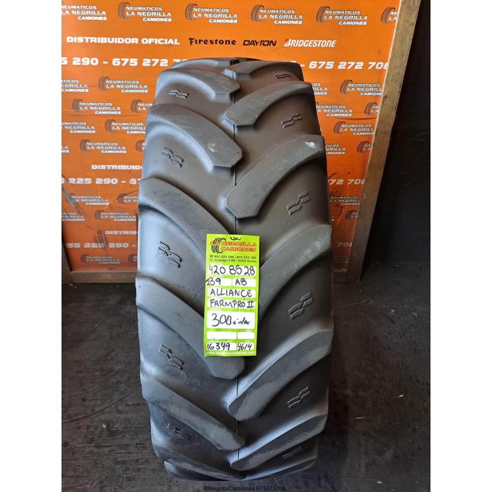 Neumatico para agricola con medida 420 85 R28 marca ALLIANCE de segunda mano. Nuestros precios llevan montaje incluido. Para cualquier otra medida escribe un WhatsApp al 675272706. Tambien atendemos preguntas al telefono 955225290 (en horario comercial), o si lo prefieres, ven directamente a nuestro taller y almacen ubicados en Sevilla y quedaras sorprendido de la calidad. Tenemos 1.000 unidades de todo tipo en 90% de las medidas tanto nuevos como seminuevos.